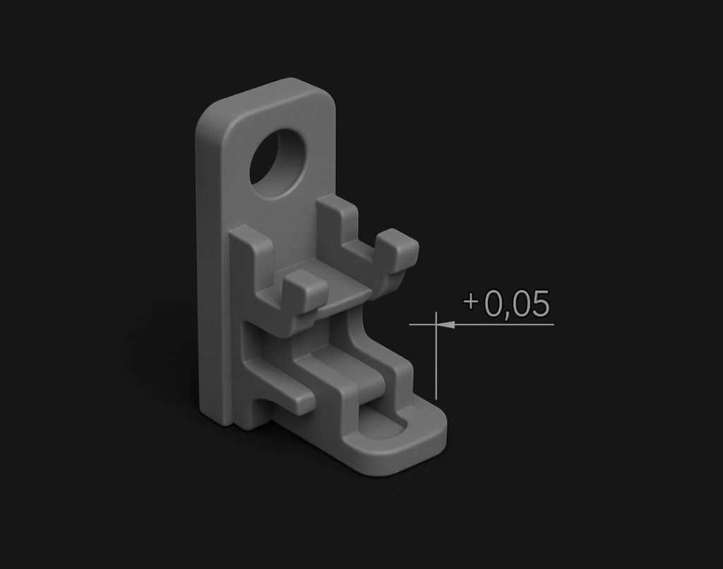 Das hängt vom Verfahren ab, liegt aber meist bei wenigen Millimetern. Selbst sehr kleine Funktionsteile wie Clips, Halter oder Schutzkappen lassen sich präzise realisieren, inklusive Einrastmechanismen oder Haltenasen.