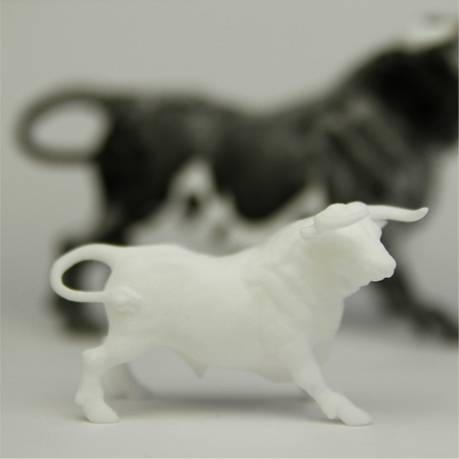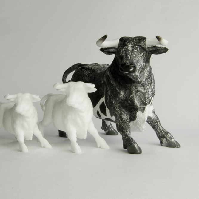 Der detaillierte Stier wurde mit Kreidespray zur besseren Sichtbarkeit aller Details eingesprüht und anschließend aus mehreren Blickwinkeln gescannt.