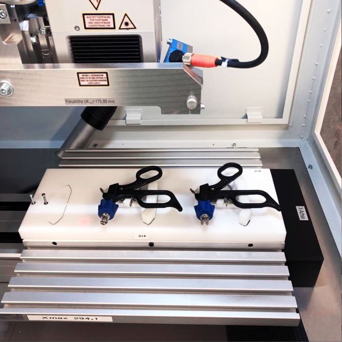 Zur fehlhandlungssicheren Beschriftung von chirurgischen Instrumenten und anderen medizinischen Werkzeugen ist eine individuell konstruierte Vorrichtung notwendig.